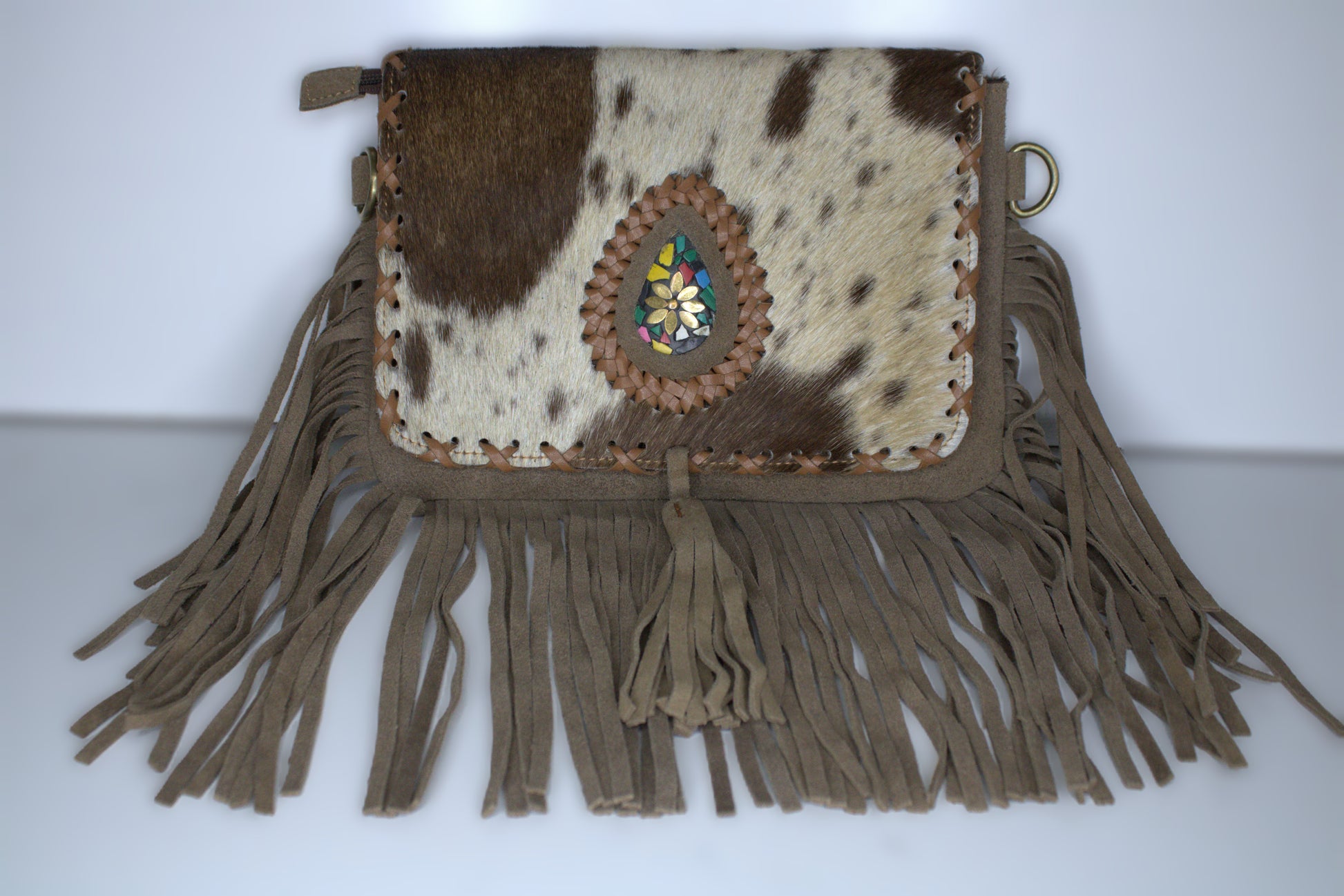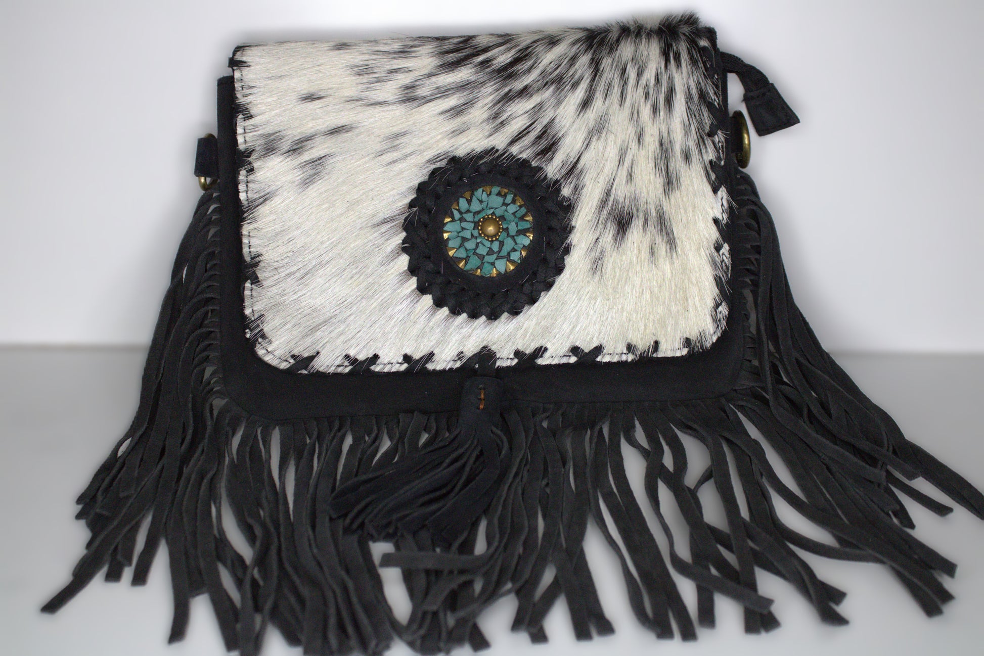 Introducing our exquisite crossbody cowhide purse with fringes, a perfect blend of style and functionality. Crafted from premium quality cowhide, this purse exudes elegance and sophistication. The unique fringes add a touch of bohemian charm, making it a trendy accessory for any occasion. With its crossbody design, it offers convenience and hands-free carrying, allowing you to stay effortlessly chic while on the go. This purse is a must-have addition to your collection, combining timeless beauty with practicality.